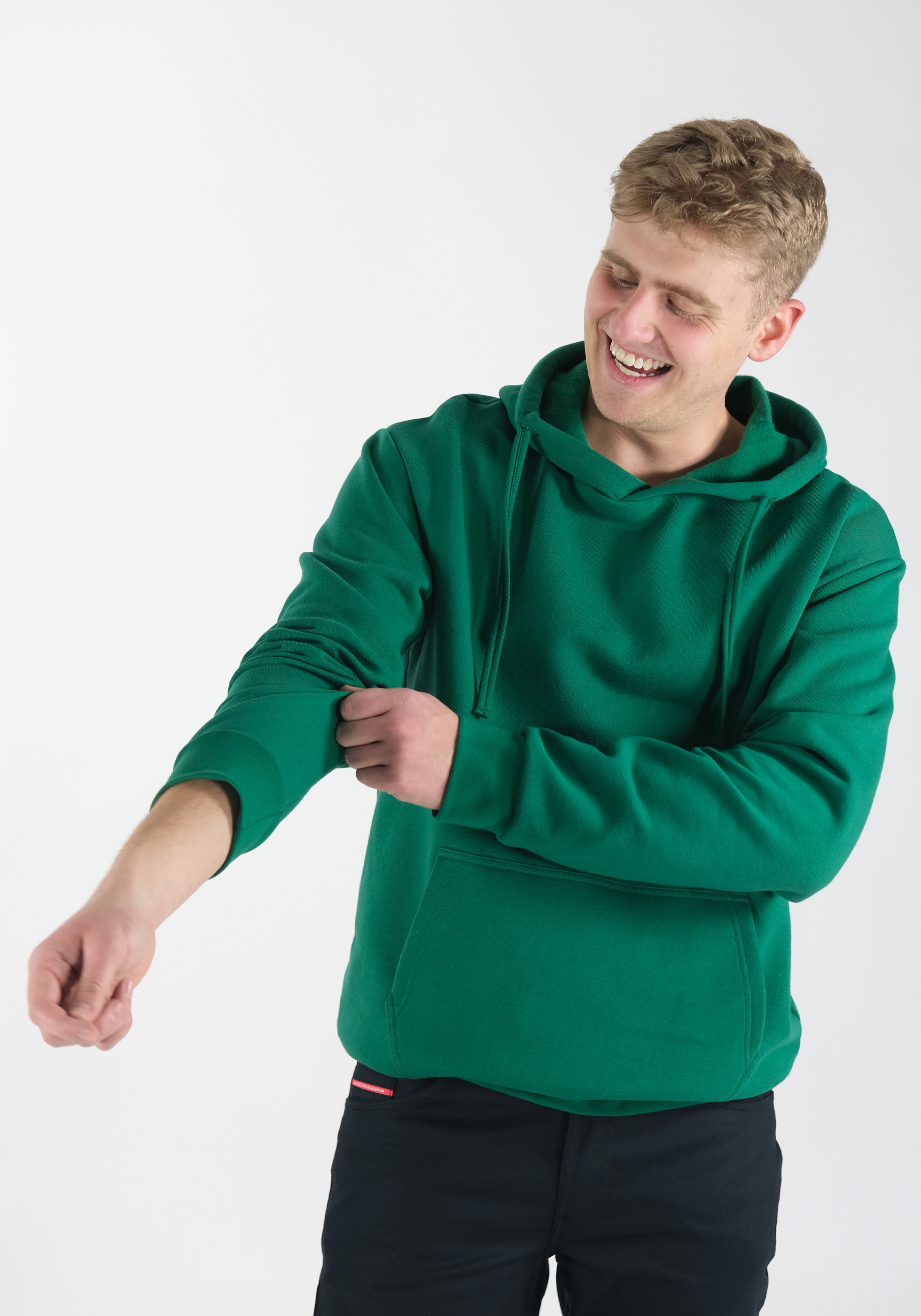 Unser relaxed fit Unisex-Hoodie AMAR ist mit seinen leicht überschnittenen Schultern, der lockeren Passform und der klassischen Känguru-Tasche besonders bequem und gemütlich. Der weiche Bio-Baumwollsweat sorgt für ein angenehmes Tragegefühl, schenkt dir Bewegungsfreiheit und einen stylischen Look.