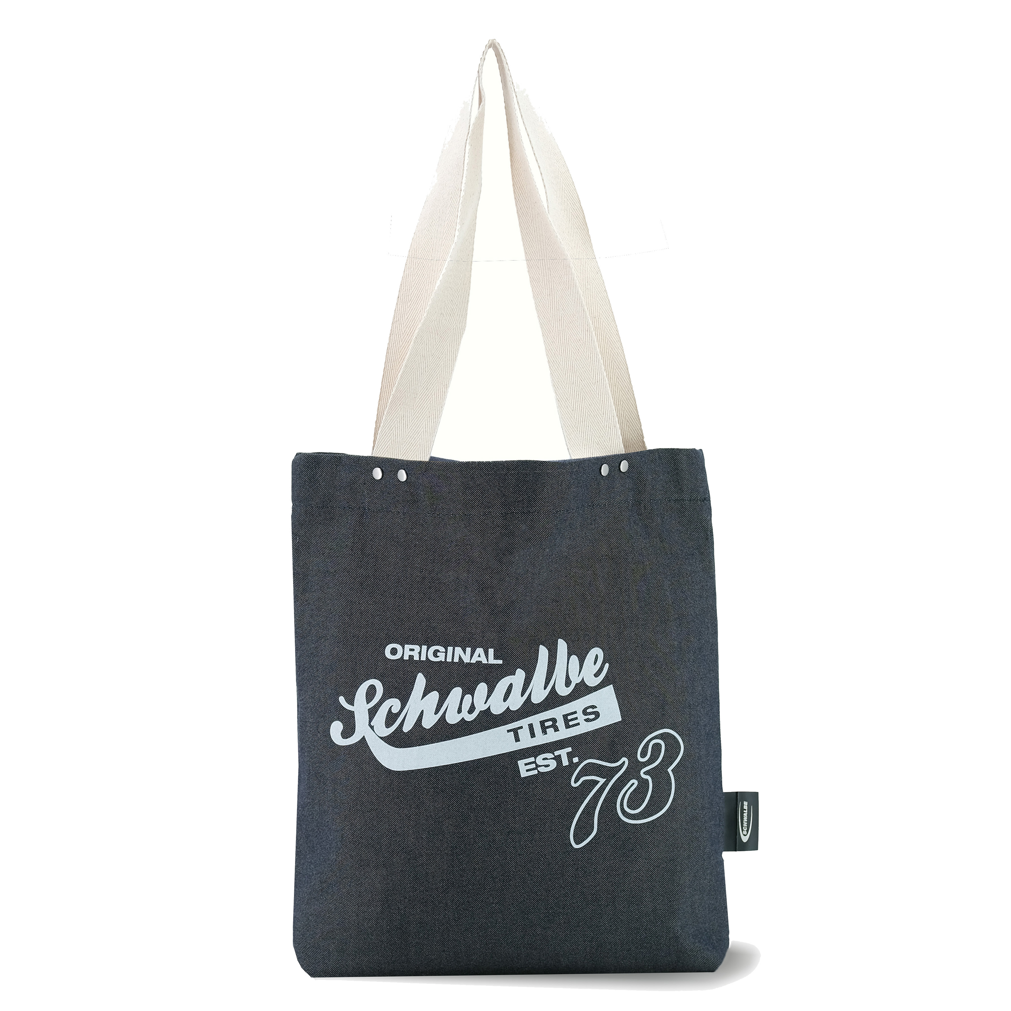 Denimtasche mit einem Etikett aus Fahrradschläuchen