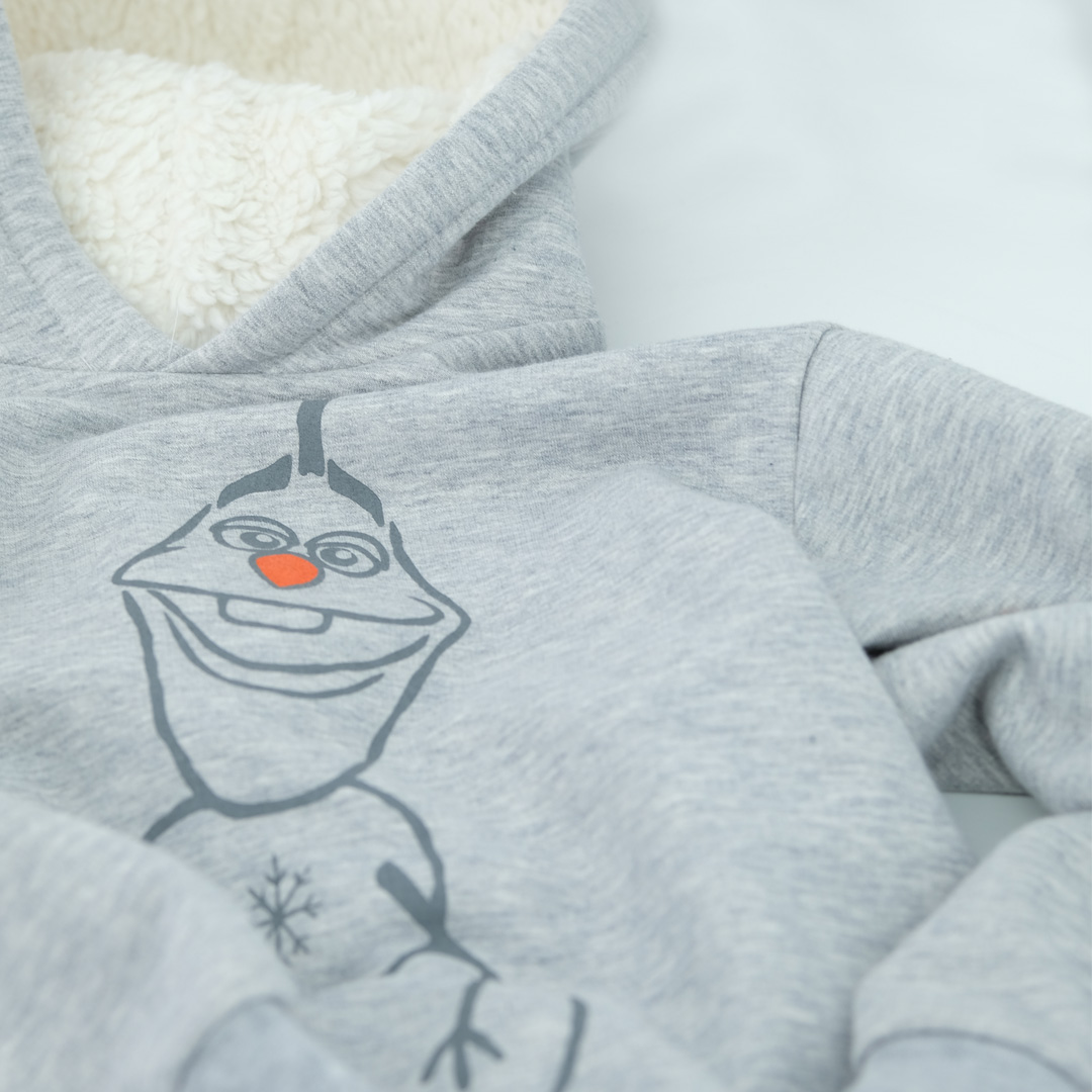 Seit 2021 haben wir für Disney's Eiskönigin rund um Olaf den Schneemann exklusive Hoodies aus Bio-Baumwollstoff gefertigt. Die besonders flauschig gefütterte Kapuze ist nur eines von vielen Highlights der Kinder-Hoodies.