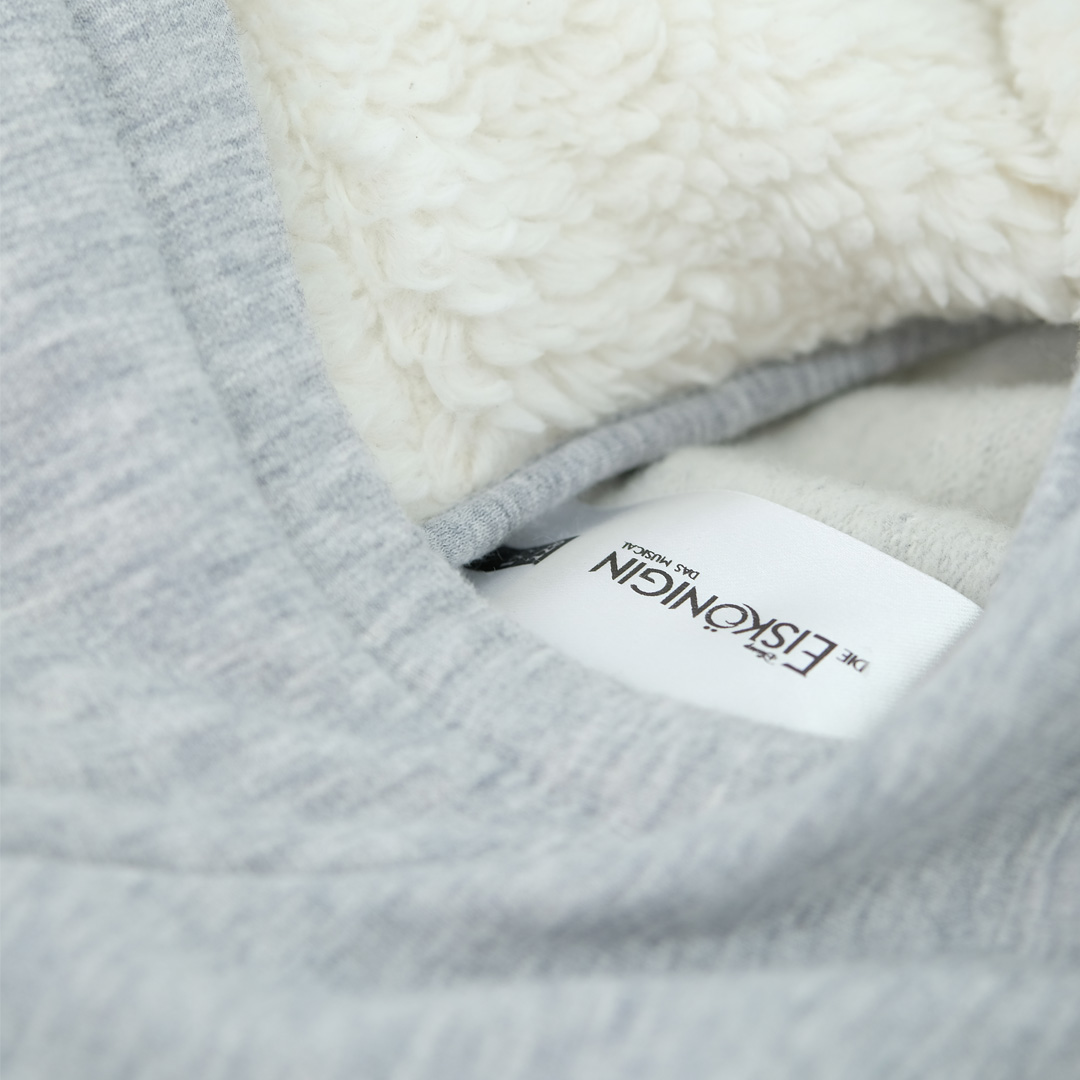 Manchmal soll's besonders sein: Hier besonders flauschig. So haben wir das Innenfutter der Hoodiekapuze aus unserem flauschig-weichen Bio-Stoff gefertigt.