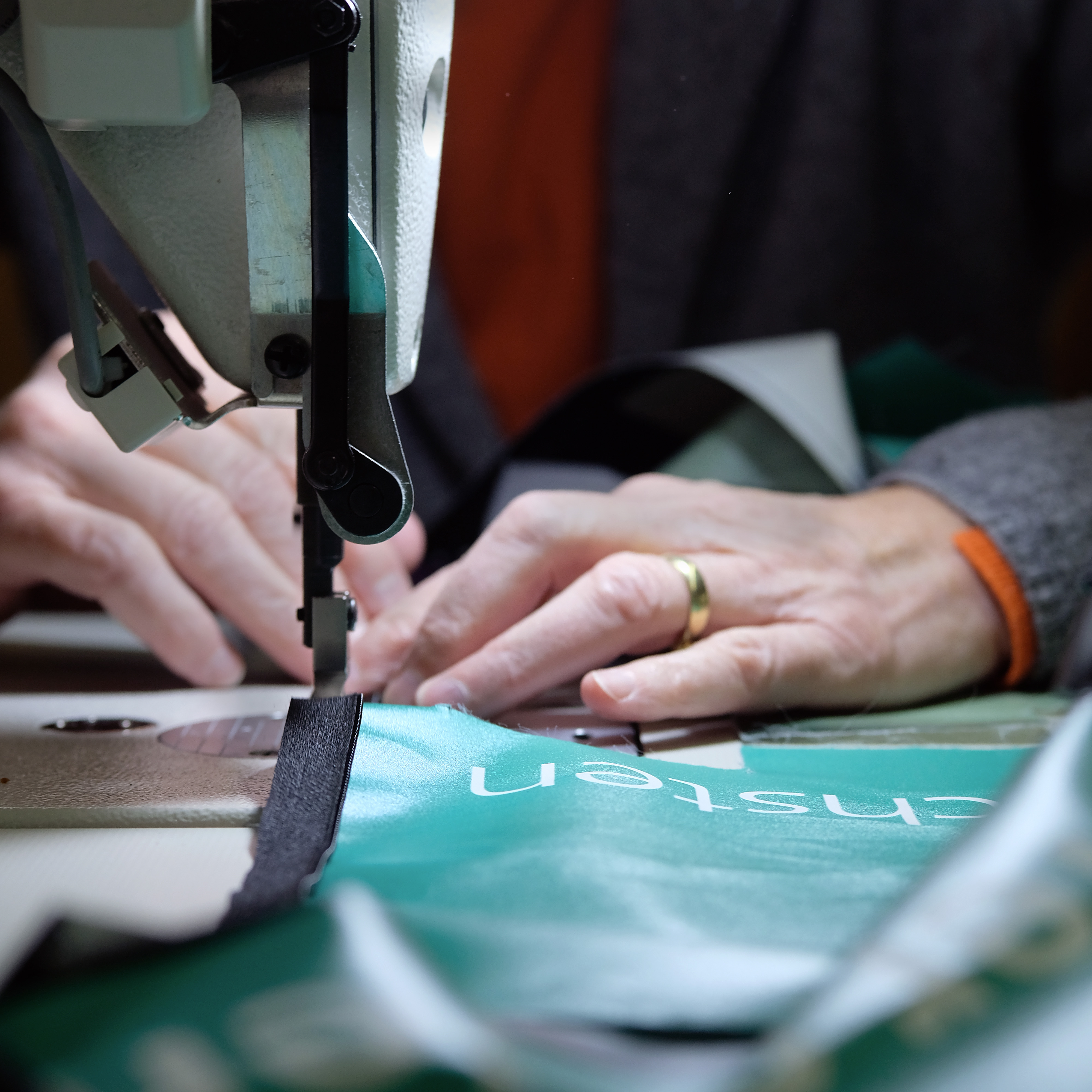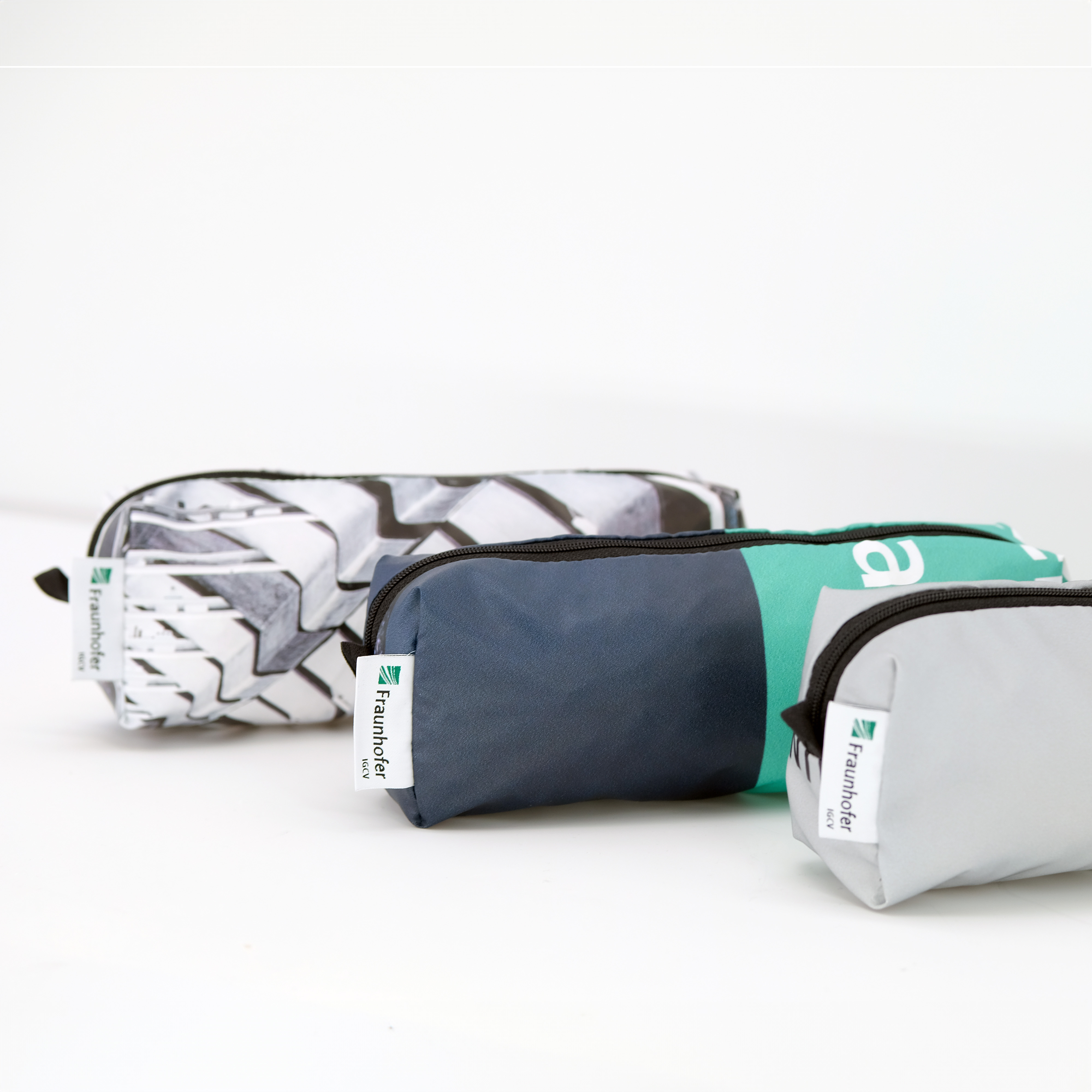 Für das Fraunhofer Institut haben wir Mäppchen und Schlüsselanhänger der ganz besonderen Art gefertigt. Aus alten Planen haben wir mit viel Tüfteln und Testen schicke Merchartikel gefertigt, die nicht nur ein echter Hingucker sind, sondern eine tolle Geschichte erzählen.