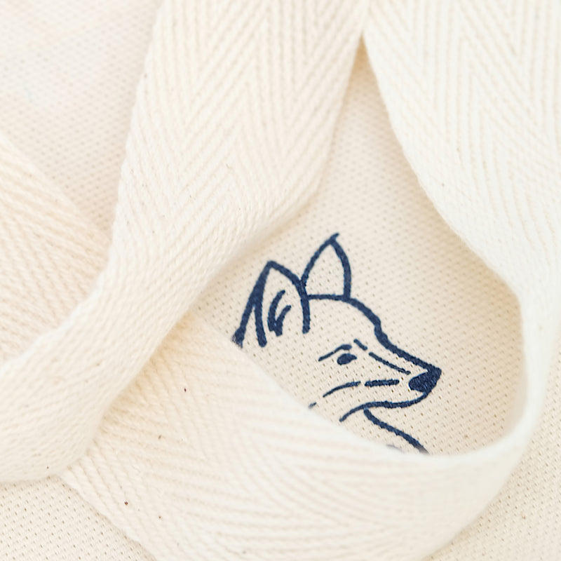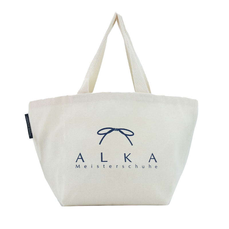 Die Umsetzung Ausgangspunkt war eine Mustertasche, die den Kunden überzeugt hatte und über die deutsche Agentur an uns weitergeleitet wurde. Darauf aufbauend entwickelten wir eine individuelle Tasche aus hochwertigem, dicken Panamastoff mit Bodenfalte und breiten Henkeln im Fischgrätmuster – beides naturfarben und in GOTS-Qualität. Das Branding ist ein hochwertiger beidseitiger Siebdruck sowie ein seitliches Webetikett mit „Made in Germany", wobei der Logodruck und das Etikett farblich passend im gleichen kundenspezifischen Blauton ausgeführt wurden.