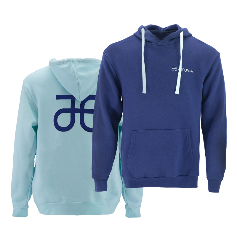 Für Atruvia, den IT-Dienstleister für das Bankwesen, haben wir 500 Team-Hoodies gefertigt. In den beiden Corporate-Farben Celeste und Navy, mit einem Schnitt, den wir eigens für dieses Projekt entwickelt haben.