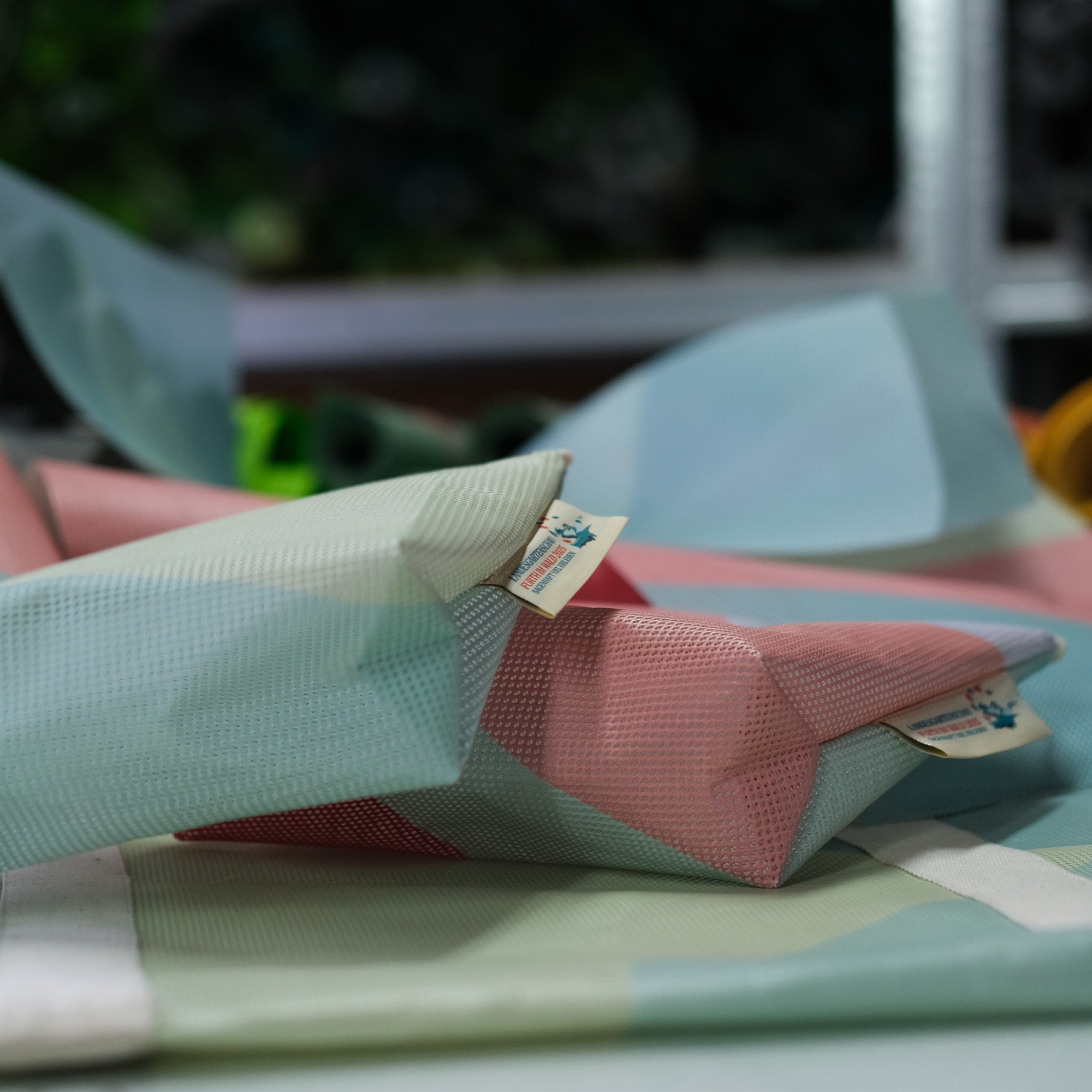 Was macht man mit über 400m² Bauzaunbespannungen von der Landesgartenschau Furth im Wald? Wir haben daraus einzigartige Give-aways veredelt mit einem fein gewobenen 5C-Webettiket produziert. Die Landesgartenschau'25 ist vorbei, aber ein Stück bleibt.